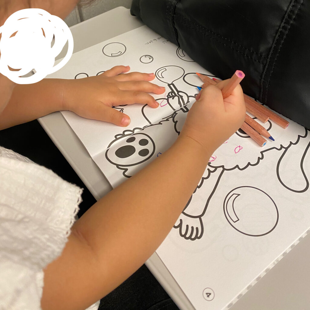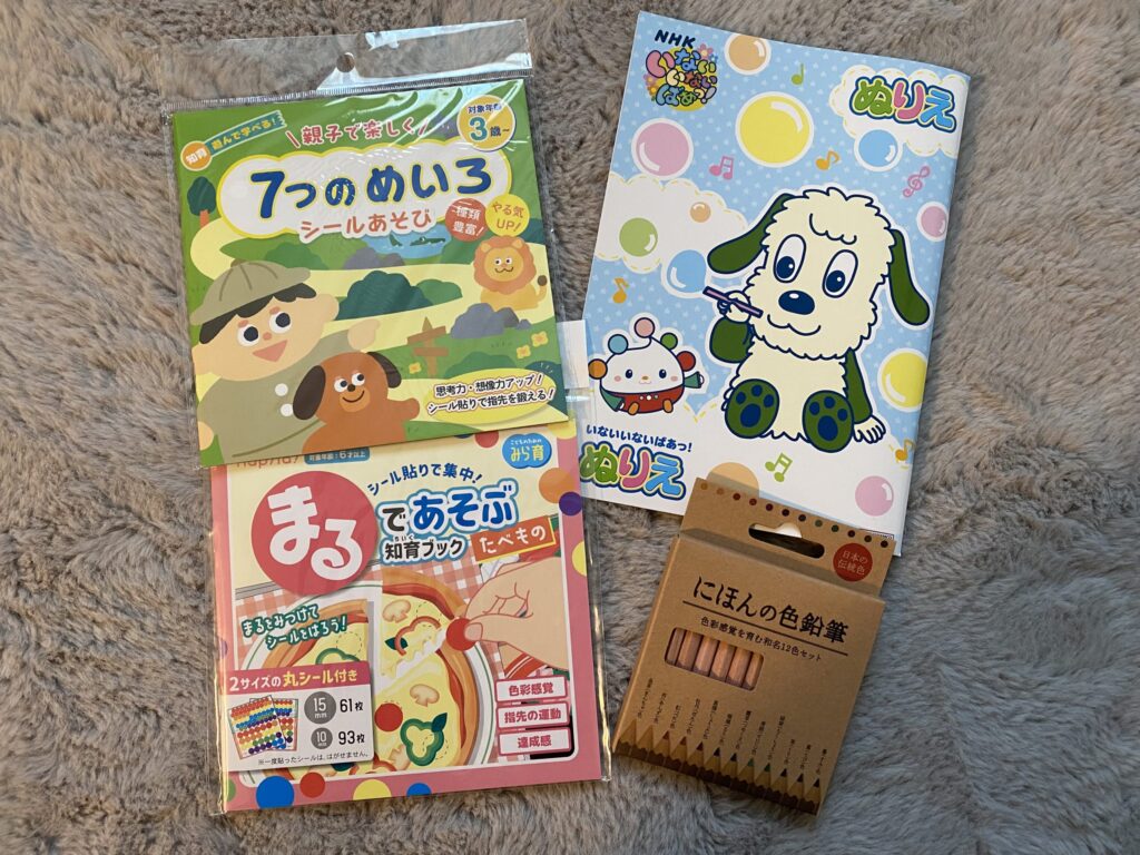 そこからは、娘の様子を見ながら、持って行ったアイテムを小出しにしました。シールもぬりえも意外と集中してくれて助かりました。